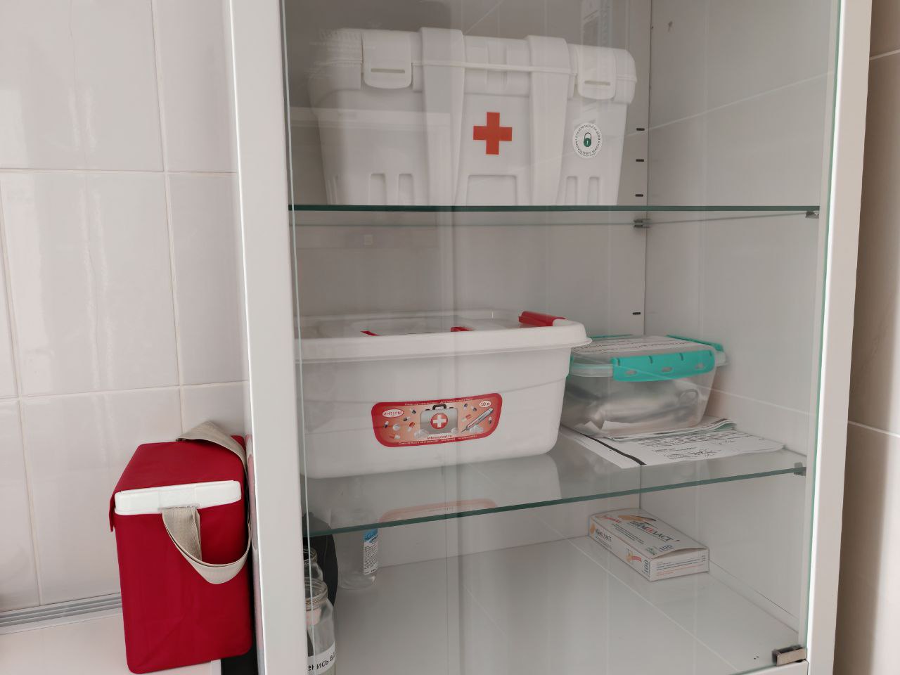 В медицинском кабинете осуществляется: осмотр детей, работа с документацией, рабочее место медицинской сестры; изолятор. Медицинский кабинет оснащен медицинским оборудованием и инвентарем в необходимом объеме, медикаменты приобретены в соответствии с утвержденным перечнем. Сроки годности и условия хранения соблюдены.