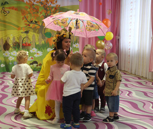 Праздник в детском саду – это всегда удивительные чудеса, волшебные краски, звонкий смех воспитанников, море улыбок и веселья. Хоть и говорят, что осень унылая пора, но дети как никто другой, способны радоваться шороху золотистых опавших листьев под ногами, дождику, под которым так интересно гулять под зонтиком. Вот почему праздник осени в детском саду является одним из самых любимых у нашей детворы. 14 октября осенние праздники прошли в первых младших и второй младшей группах. Дети танцевали с осенними листьями, разноцветными зонтиками, исполняли песни. К ребятам приходила в гости красавица Осень, с которой дети играли и танцевали. Мероприятия были веселыми и яркими. Воспитанники получили много позитивных эмоций. В завершении Осень угостила всех ребят вкусными, сочными яблоками.