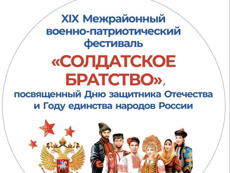 Воспитанники подготовительной группы приняли участие в XIX Межрайонном военно-патриотическом фестивале «Солдатское братство», посвященному Дню защитника Отечества и Году единства народов России. Организаторы конкурса: Администрация города Белокуриха и МБУ «Центр культуры города Белокуриха». Цели и задачи конкурса: - формирование у молодежи патриотического созна ... Читать дальше » |