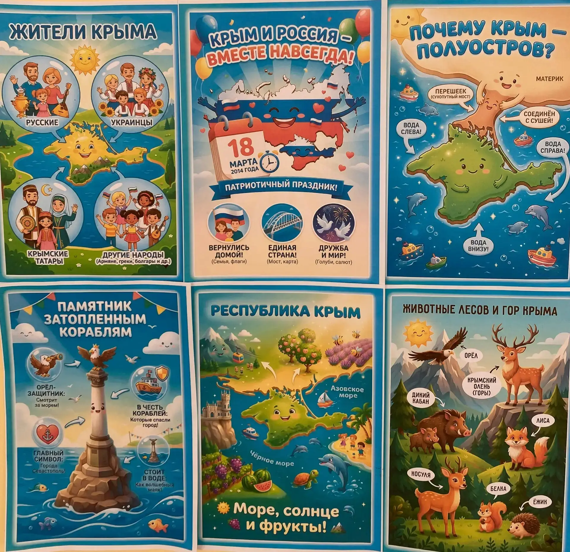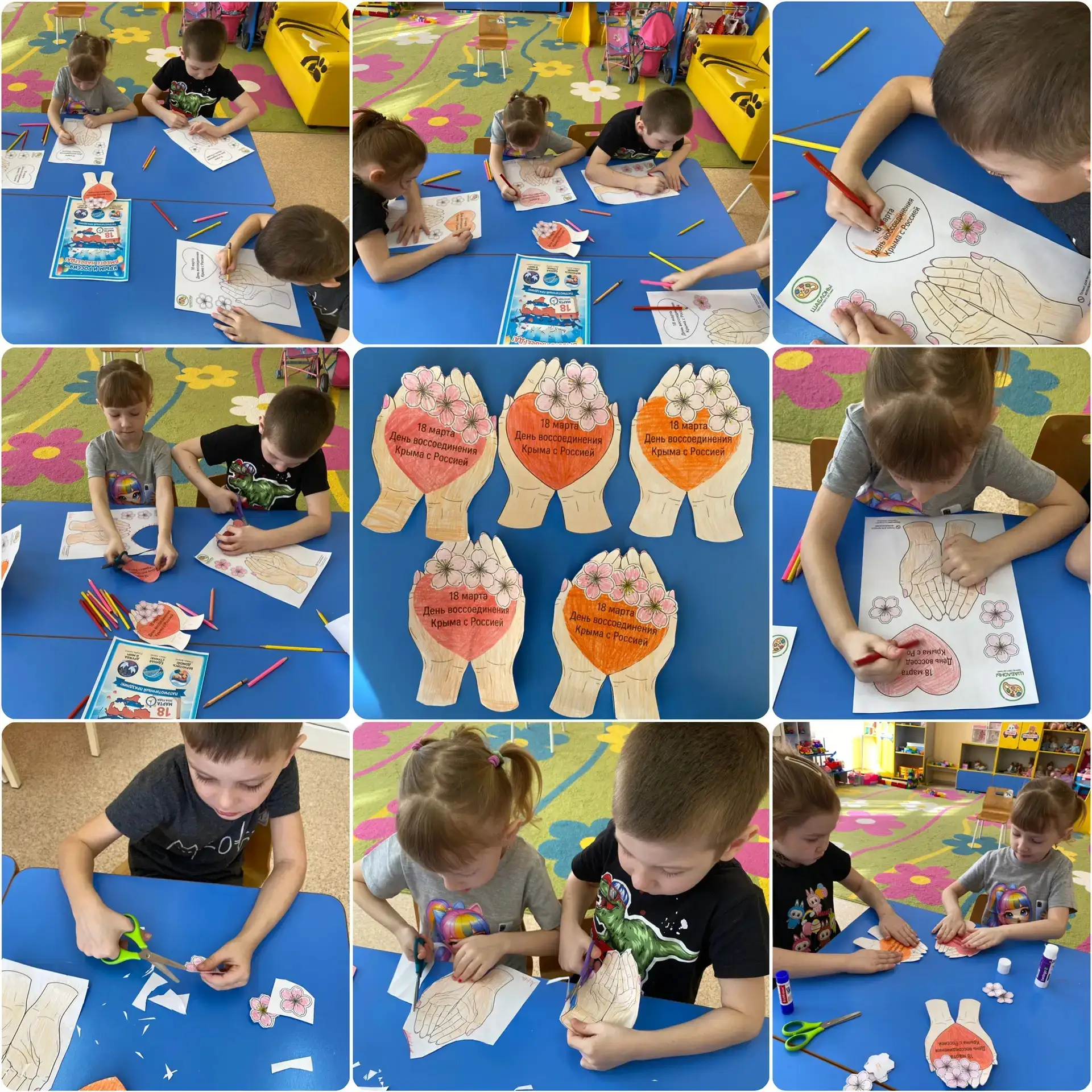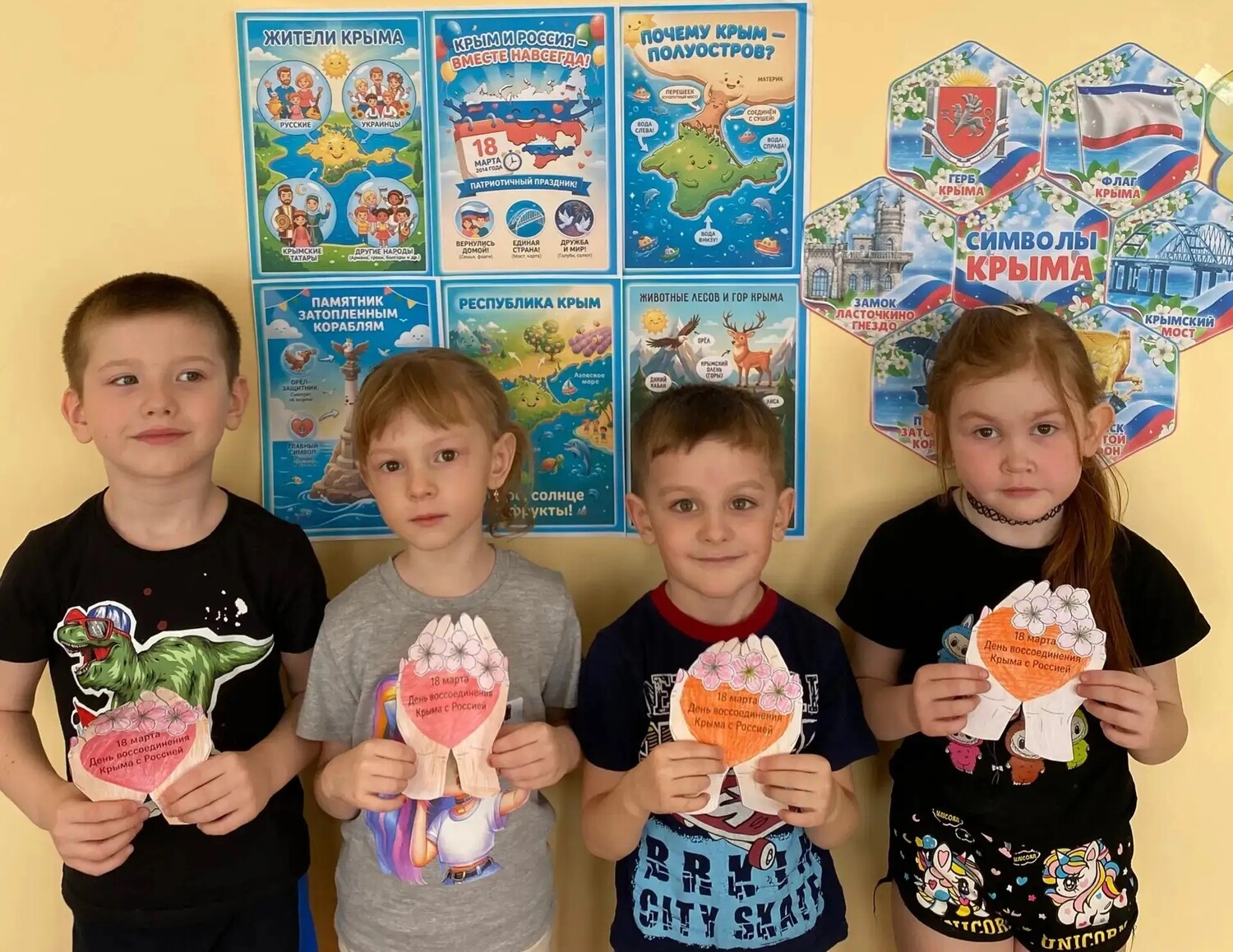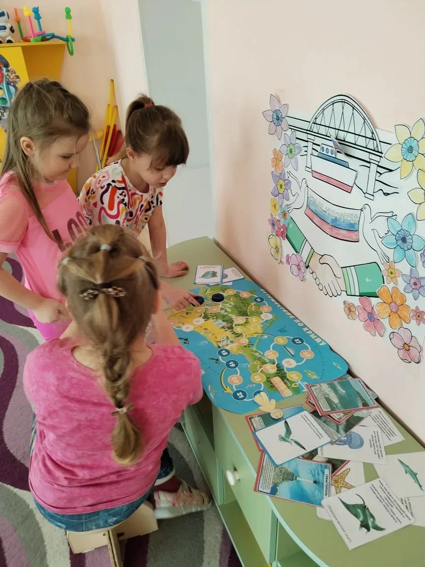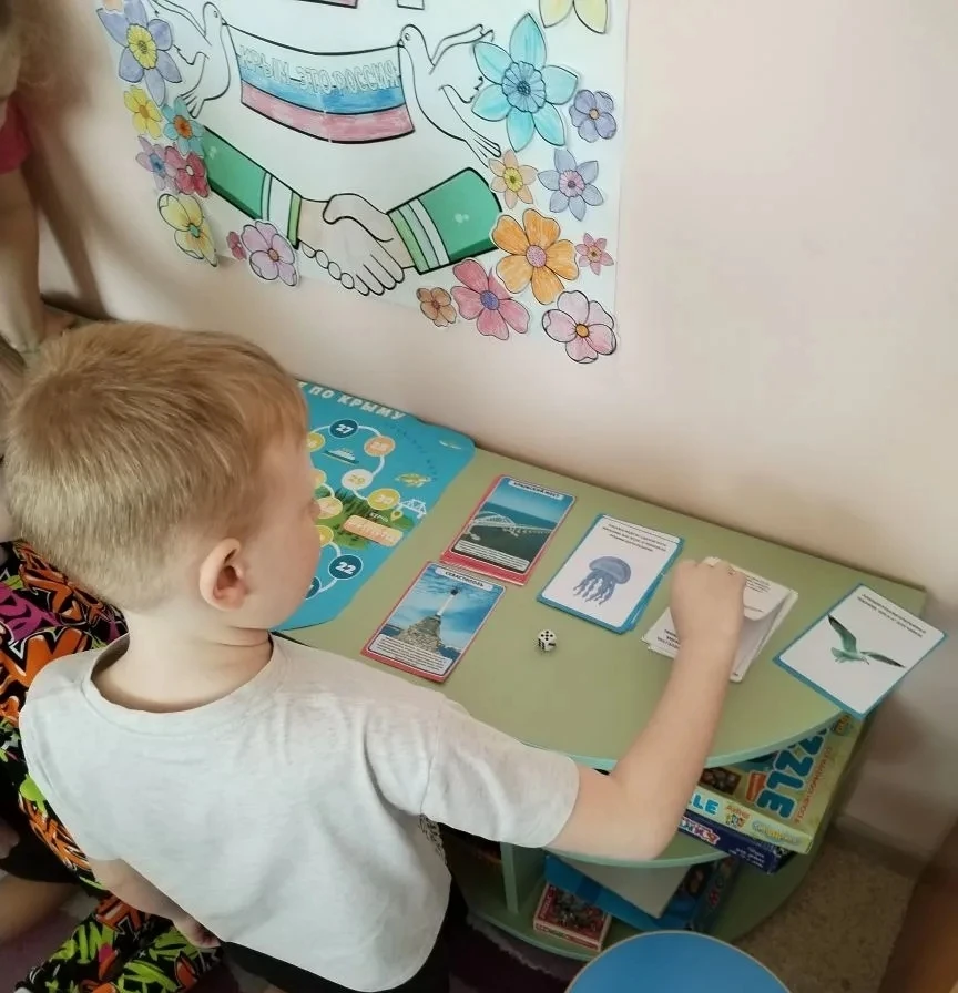 С дошкольниками были проведены познавательные беседы «Крым и Россия — едины", из которых узнали об истории полуострова, его достопримечательностях, природе. Ребята с интересом рассмотрели глобус и месторасположение полуострова, с удовольствием играли в игру-бродилку "Достопримечательности Крыма", в творческой мастерской изготовили символические поделки. Этот тематический день подарил детям много новой и интересной информации о Крыме - уникальном уголке нашей планеты.